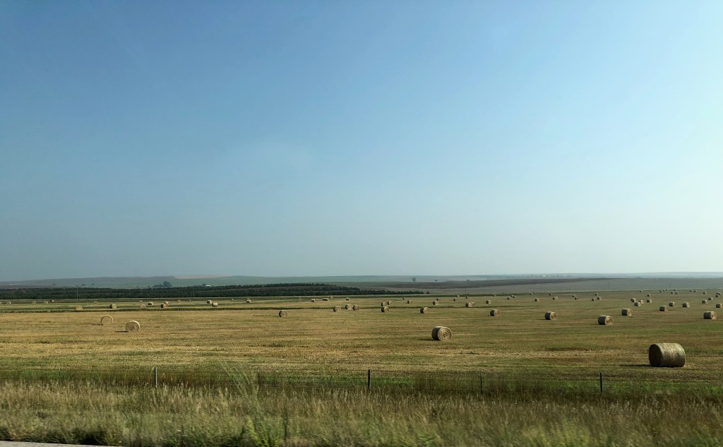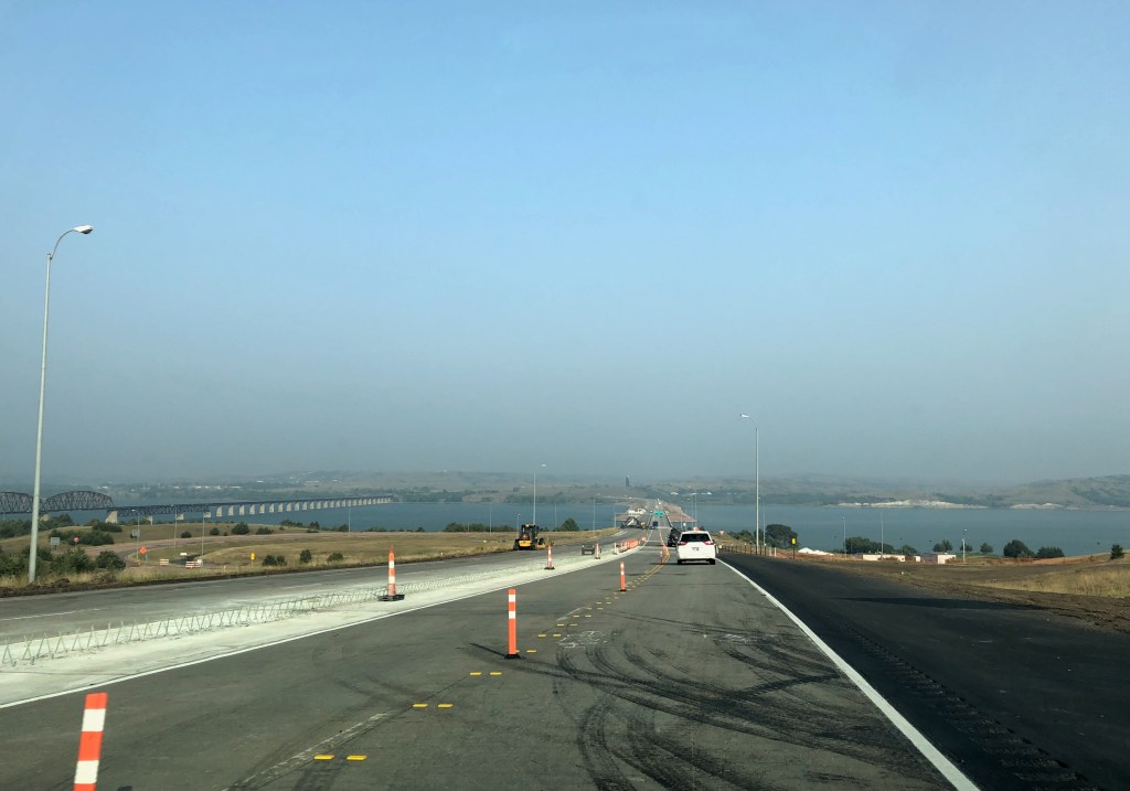The Missouri River cuts through the state, pretty much in the middle. East of the river the land is very flat. Immediately after crossing the river, the land changes to having more roll to it, getting increasingly up-and-down as we continued west.