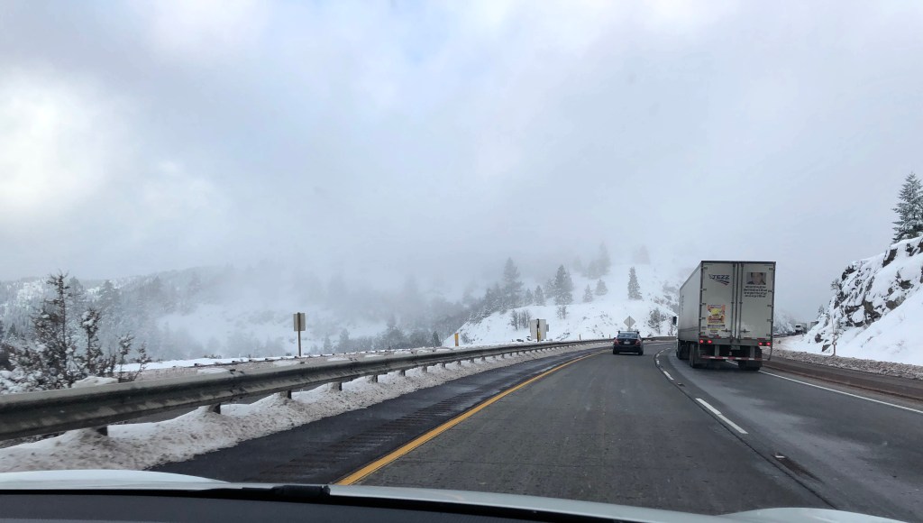And so it went. Each morning we would get up early and set off earlier and drive farther than has been our habit, The forecast called for Wednesday and Friday snow on Siskiyou Pass on the California-Oregon border – elevation 4,129 feet, but just one of three crests of about that elevation on that section of road. The Thursday forecast called for daytime temperatures around 40º and no precipitation, so we pressed on to stay overnight in Ashland, just north of the pass.